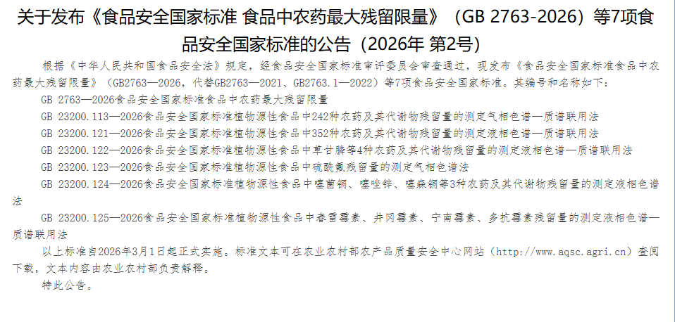 依据标准:GB 2763—2019《食品安全国家标准 食品中农药最大残留限量》